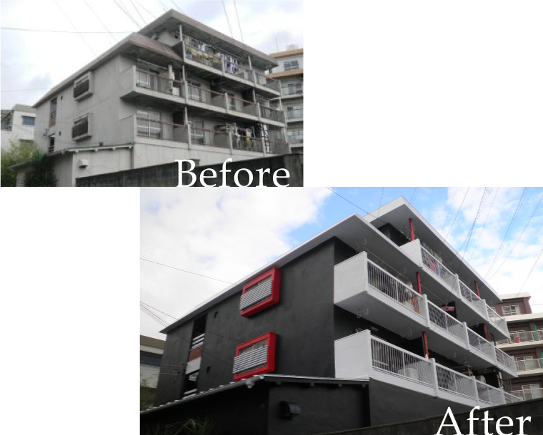 入居者や建物維持管理だけでなく、いかに家賃を下げず入居率を上げるか、熱心に提案していただき、おかげで改装後3ヶ月で満室になりました。最初は外装を黒く塗装すると聞いて驚きましたが、信じてよかった!やはりプロは違いますね。築古でもこんなに生まれ変わるものなんですね。