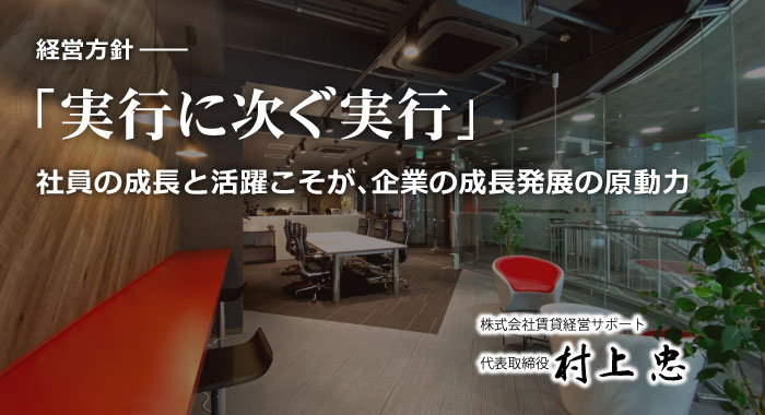 当社経営方針は、「実行に次ぐ実行」です。