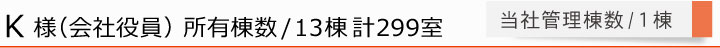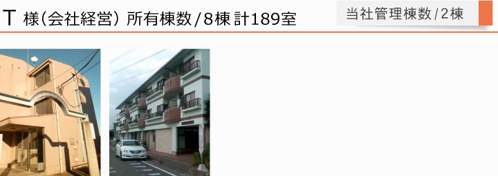 銀行からの紹介で賃貸経営サポートさんに管理をお任せしました。聞いてはいましたが、さすがに稼働率が高いだけあって、次の入居者が決まるのが早いですね。他社では、退去から募集までに、原状回復工事の手配や工事費用の承認に時間がかかり、なかなか募集できなかったのですが、賃貸経営サポートさんは、20万円未満の原状回復工事については事後承認ですし、工事の手配から完了まで早く、募集までの時間がとても早いです。